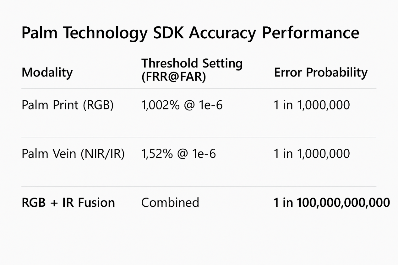 ・ Enables secure ID–palm binding for fast and inclusive onboarding